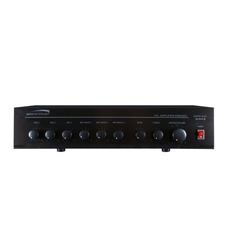 RMS power ranging from 60W to 120W microphone and source mixing ability, telephone paging interface and music-on-hold capability.
