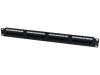 The C6PANEL24 24-port 110-type Rack Mount Cat 6 Patch Panel is color coded for both T568A and T568B wiring providing the perfect solution for any voice or LAN application. For hassle-free connections, the patch panel offers straight Cat 6 ports with 110-type termination, making it easy to insert and remove your cables. The 24-port patch panel also offers a quick and easy way to identify your cable runs, with port numbers clearly marked on the back of each RJ45 port, and a writeable/erasable marking surface for each port on the front of the panel for efficient system management.