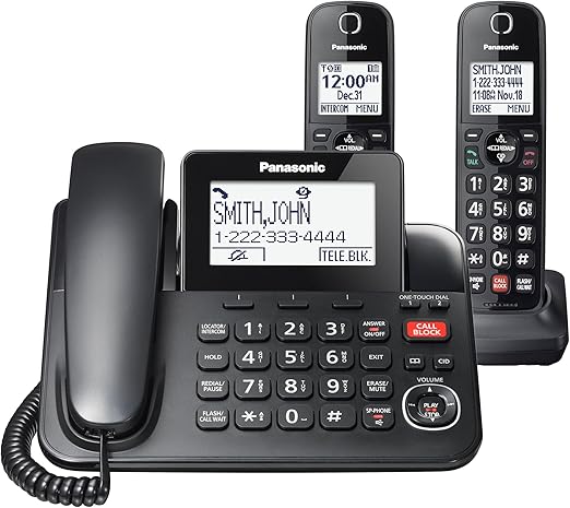 Panasonic Corded/Cordless Phone with Advanced Call Block, 2-Way Recording and Digital Answering Machine, 2 Handsets Expandable up to 6 Cordless Handsets - KX-TGF852B (Black)