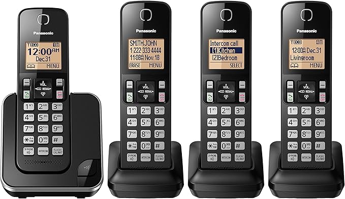 Panasonic KX-TGC384 Cordless Phone System with 4 Handsets - Black
