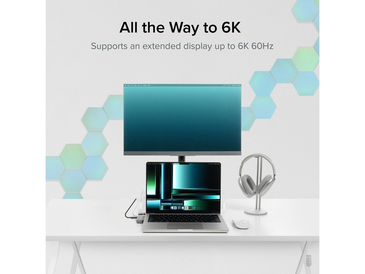 A couple of things to note about this USB C HDMI adapter. If your computer only supports DP 1.2, you can enjoy all the same benefits, but at a resolution of 1080p 60Hz across both displays.